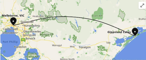 Approximately 290 klm from Melbourne (just over 3 hours drive)